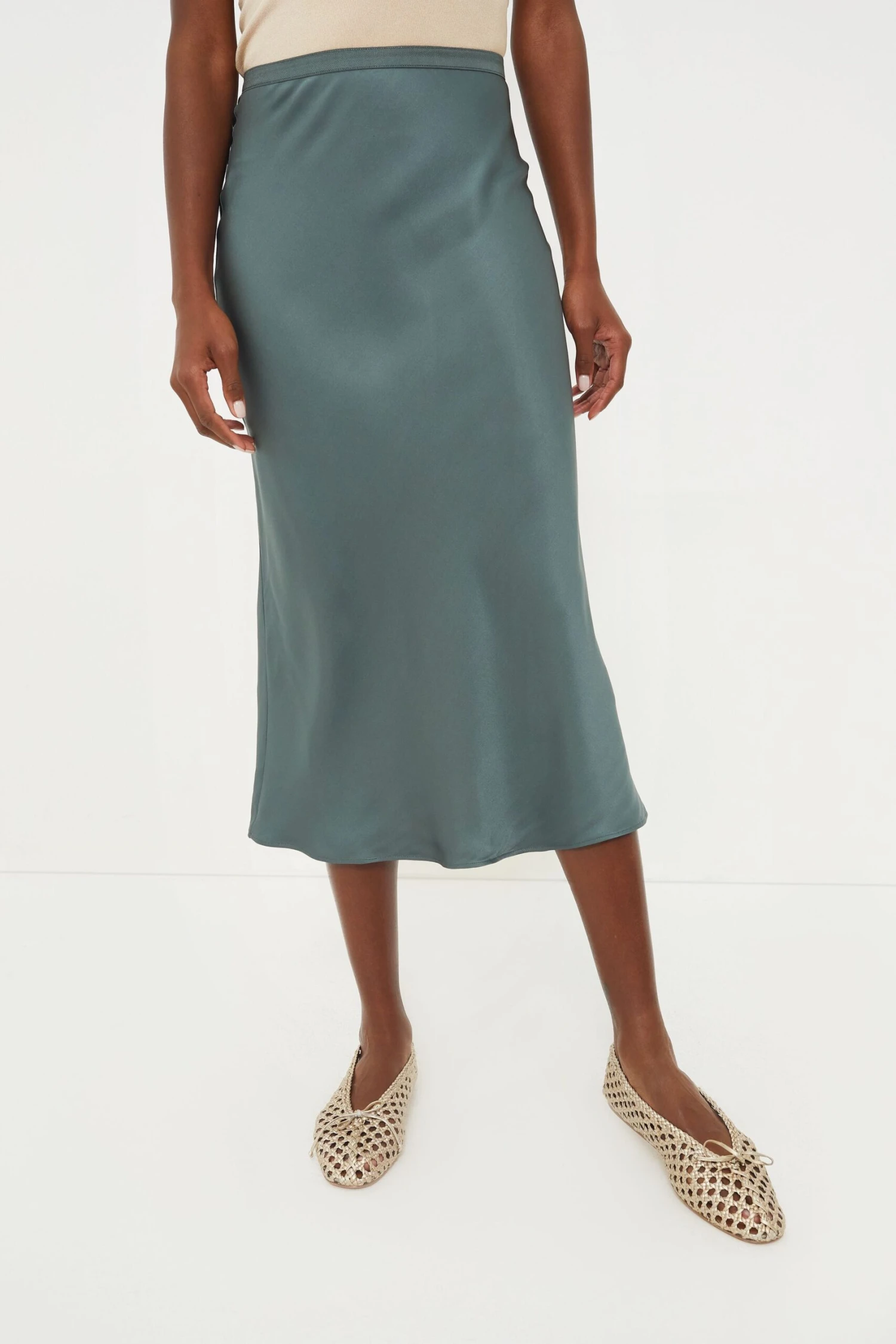 ANINE BING Dark Sage Bar Silk Skirt