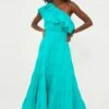 In a vibrant, cool blue that has us wishing for time spent poolside, the Acqua Paige Dress is a stunning midi. The ruffled stand collar, gathered neckline with smocking, and short puff sleeves with a wide band all create special details that set this style apart, while a voluminous A-line silhouette ensures a twirl-worthy fit that moves with you. Pair with sandals and sunglasses for a chic lunchtime outfit, or style with heels and a clutch to go dancing with the girls!