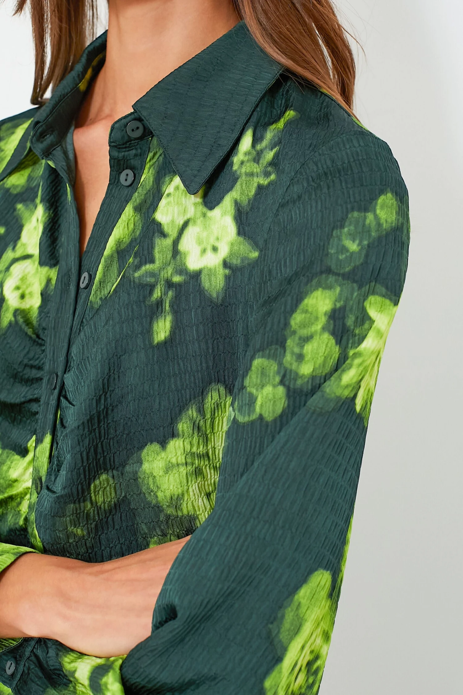 - Long sleeves with buttoned cuffs
