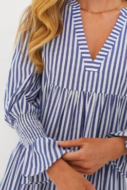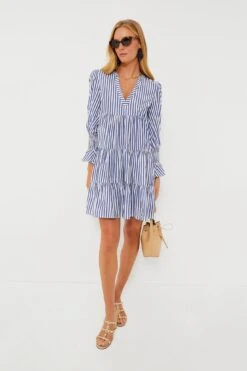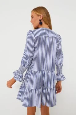 A Tuckernuck fan favorite, the Blue and White Stripe Cotton Poplin Kenzo Dress is the mini of the season. Featuring feminine flutter smocked wrists, a V-neckline, and a loose empire waist, this flirty frock is the most flattering day dress. Pair with sneakers and your favorite sunglasses for a casual day look or dress up with heels and statement earrings for date night.
