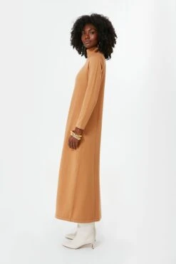 Chic understated glamour meets the Camel Ellery Dress. With a turtleneck, three-quarter length sleeves, and an A-line fit, this maxi is the epitome of elegance and class. Whether you’re window shopping or heading to your favorite restaurant with friends, pair this sweet, sweater stunner with boots and a clutch for a timeless look.