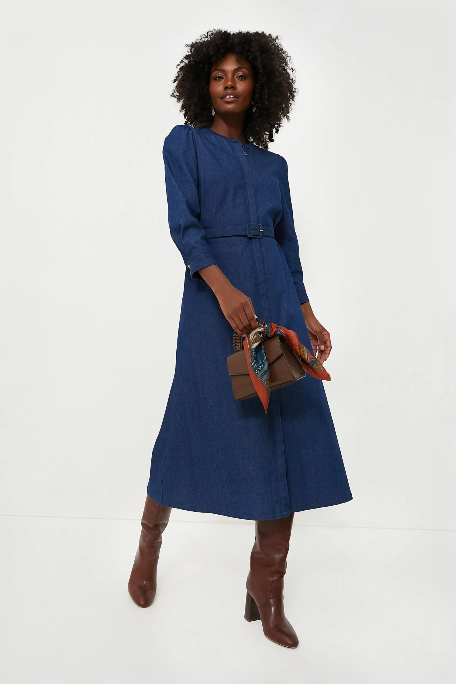 The Catherine Dress is the perfect anytime, anywhere closet staple piece. The chambray fabric keeps it casual while the elegant length, covered front placket and matching belt add elements of formality without feeling stuffy and situational. Complete with hidden side seam pockets, slightly puff shoulders and an easy neckline, this midi can be styled with everything from heels to boots to loafers season after season.