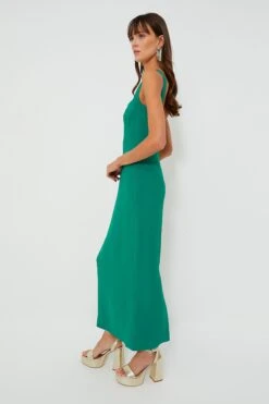 An elegant style, the Rachel C Dress is a flattering midi that comes in an enchanting emerald green color. The square neckline, wide shoulder straps, and fitted shape create a silhouette that is nothing short of classy. Pair with gold heels, drop earrings, and a clutch for an outfit that will grace any event.