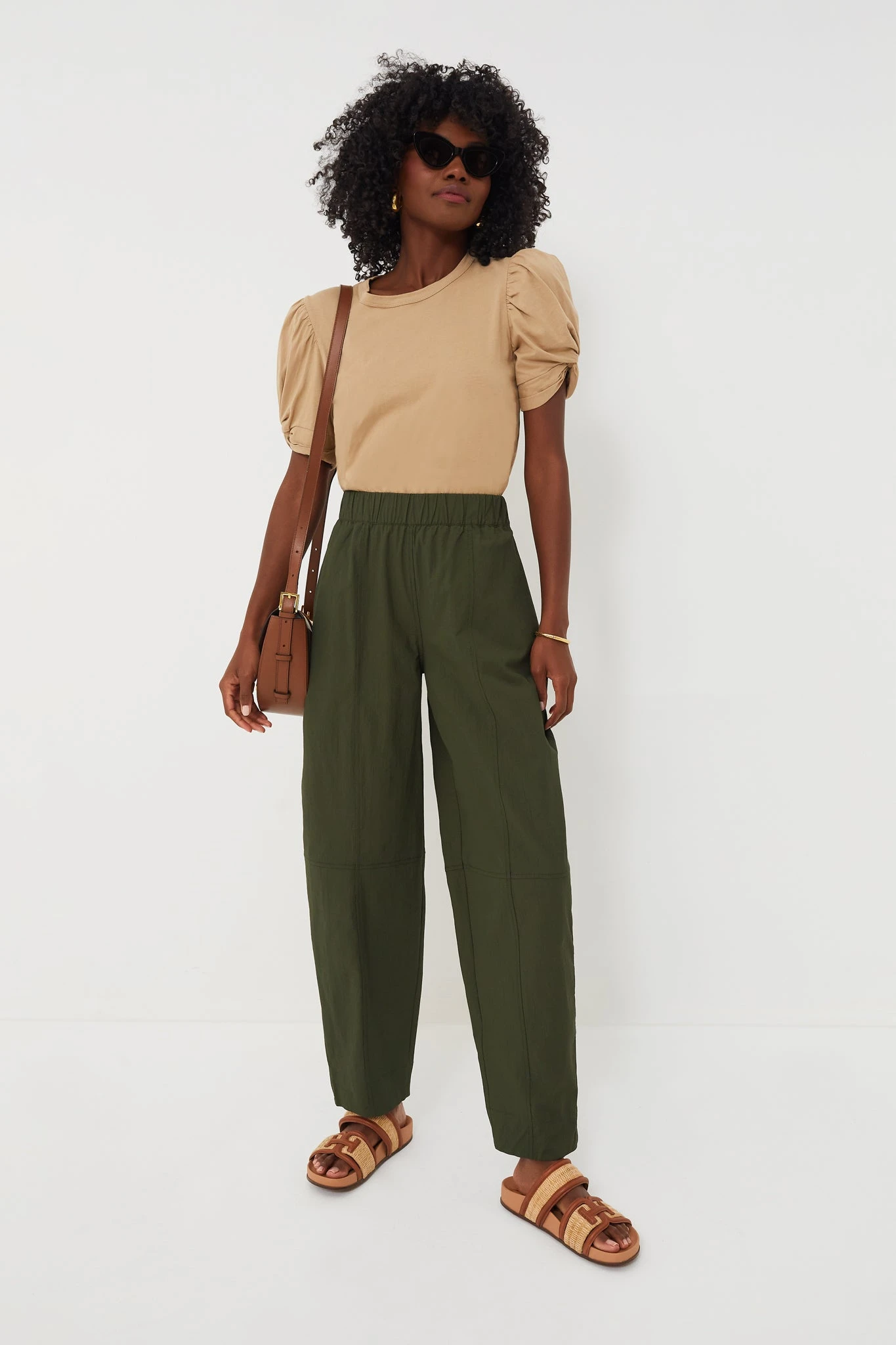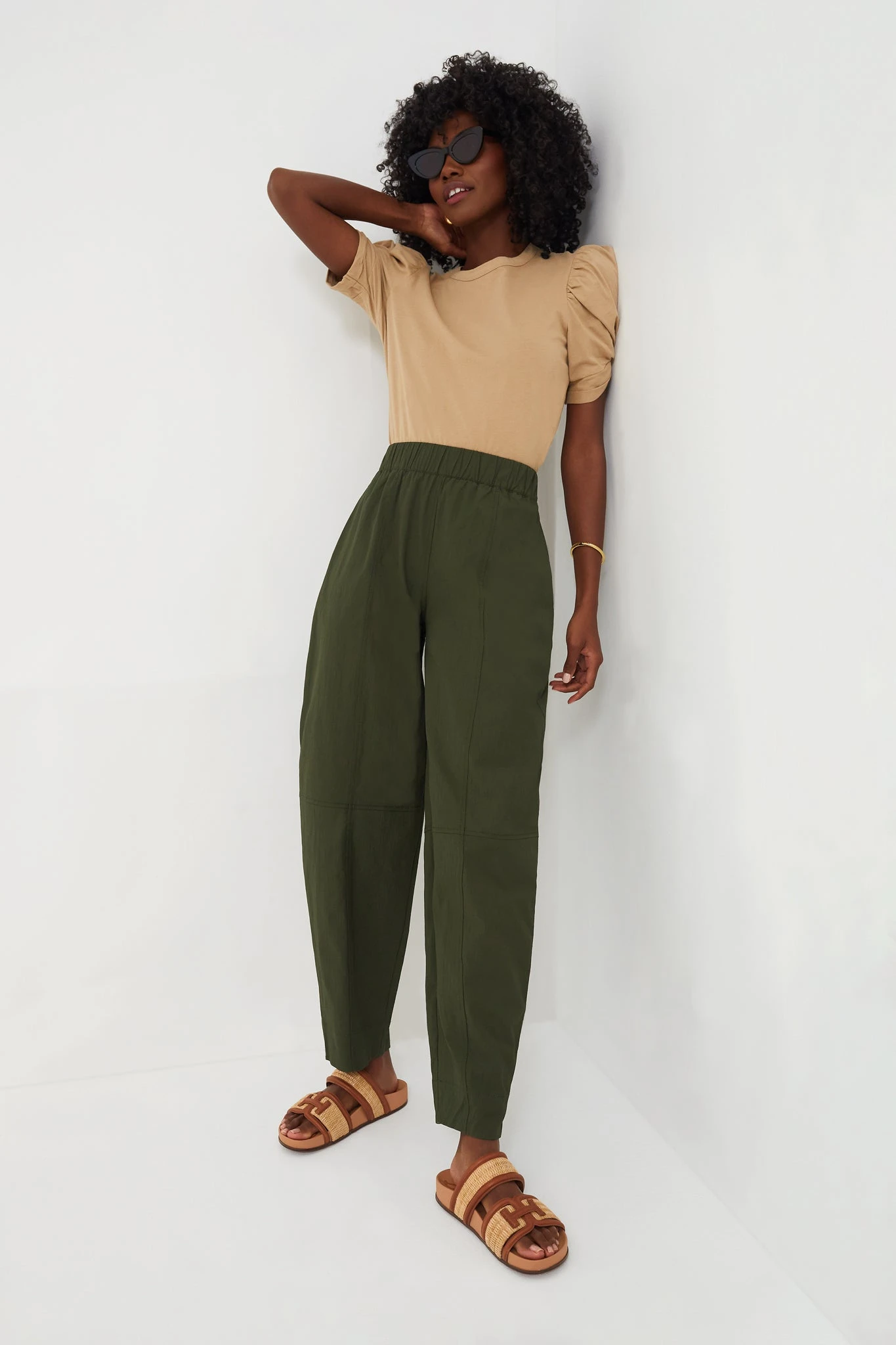 An elevated yet comfortable style, the Kombu Green Cotton Crepe Elasticated Curve Pants are ideal for everyday wear. These relaxed pants feature an elastic waistband, side pockets, and curved legs for a flattering, modern silhouette. Pair with a tee and sneakers for a city-chic look, or with ballet flats and a button down for an absolutely cool-girl outfit.