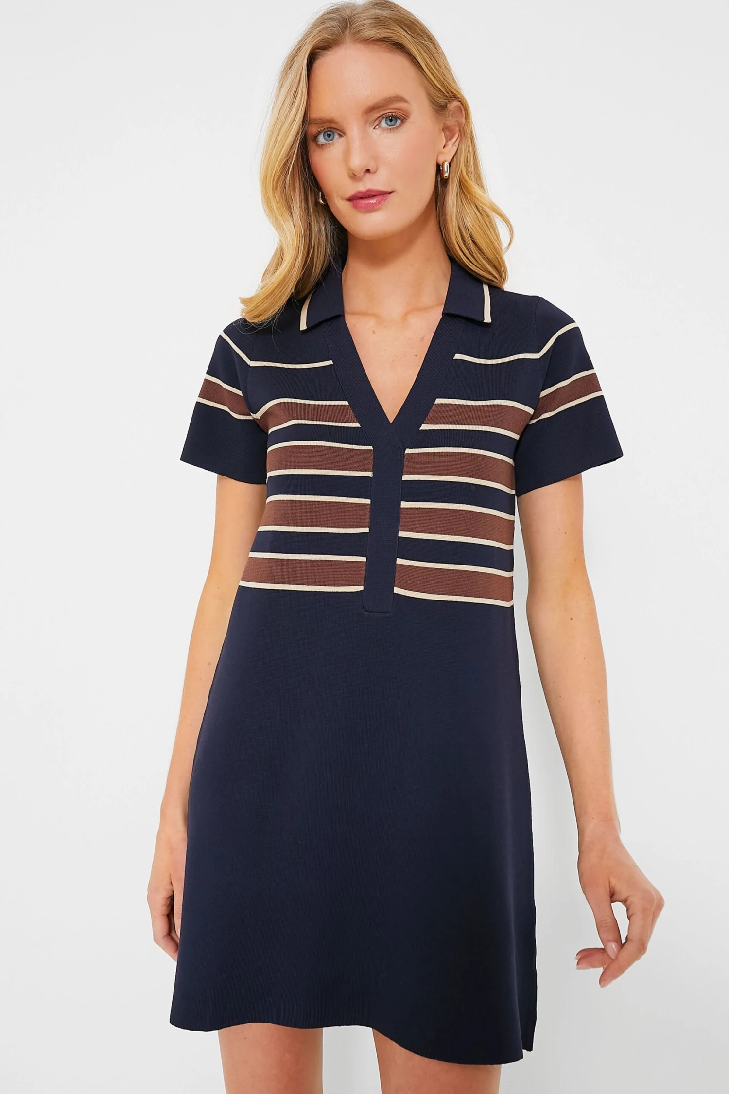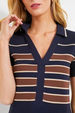 We made the Midnight Cacao Wright Polo Dress for a piece of tasteful elegance in your casual everyday wardrobe. This knit mini boasts a V-neckline, sporty ribbed collar, and a class stripe design. Style with sneakers or ballet flats and a crossbody for an elevated day look that can carry you from work to play with ease!