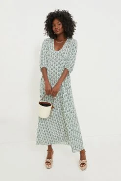 Bring vacay into the everyday with the Multi Atlantic Dress. Cut in vibrant florals, this maxi features a tiered silhouette with ruffle trim, and multicolor ric rac creating a maximal look for those who love to express themselves and make a statement with their clothes. The exaggerated puff sleeves and a delicate drawstring cinched at the waist offers a flattering effect. Pair with raffia accessories or gold jewelry for a bright resort look that says “I have arrived”!
