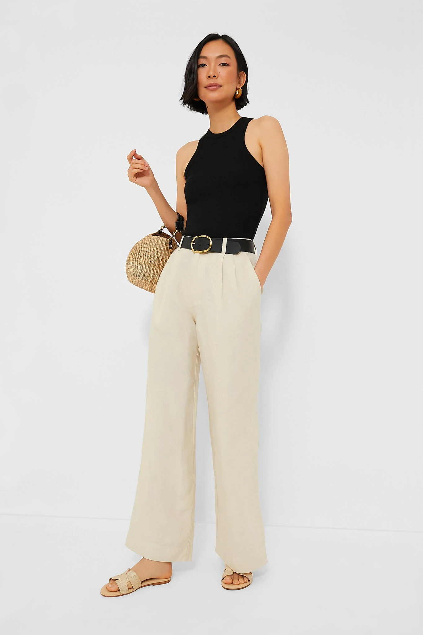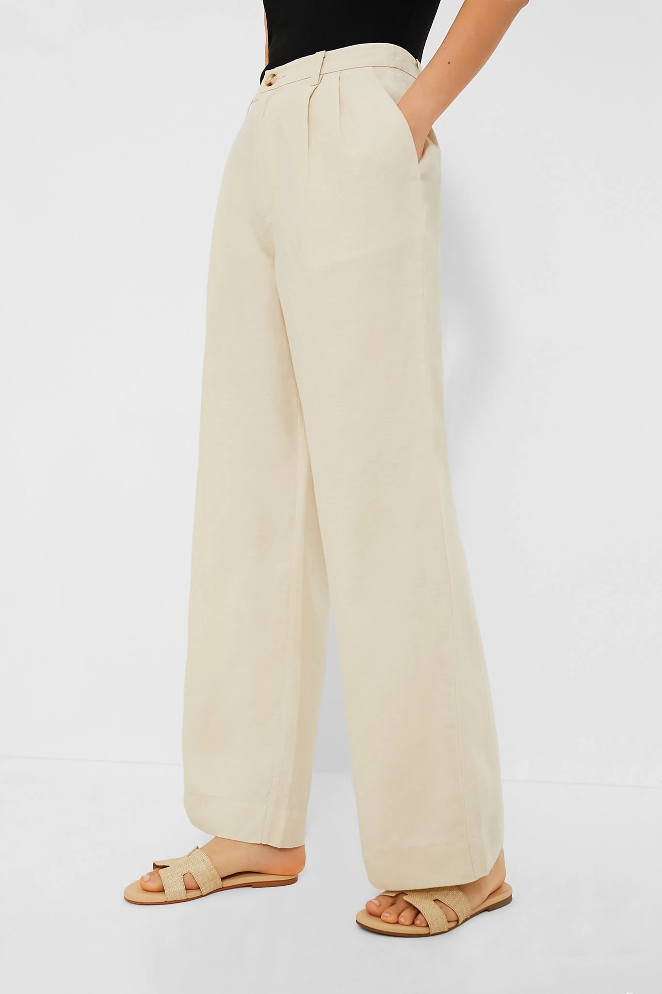 Onia’s Sandshell Air Linen Pleated Trousers are tailored with a high-rise waist, featuring belt loops, a zip-fly with a button closure, and slash pockets. Pleats enhance the wide-leg shape, creating a flattering silhouette that is all-business with just enough fun. Pair with a body suit and ballet flats for a clean look, or with a sweater and loafers for an office-casual outfit.