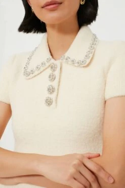 SELF PORTRAIT Cream Soft Knit Mini Dress
