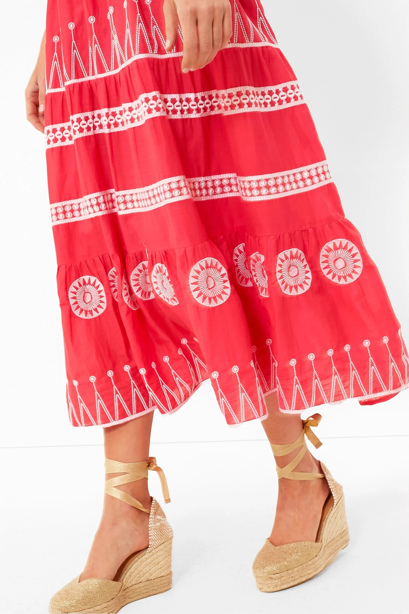 The Soleil Red Flirty V-Neck Dress fully embodies easy elegance and will ensure you will be on the best dressed list. Featuring a silhouette of your dreams with flutter sleeves and tiered skirt, this maxi is versatile enough to wear to an elevated brunch or to a warm weather getaway, just add statement accessories and heels for an unforgettable ensemble.
