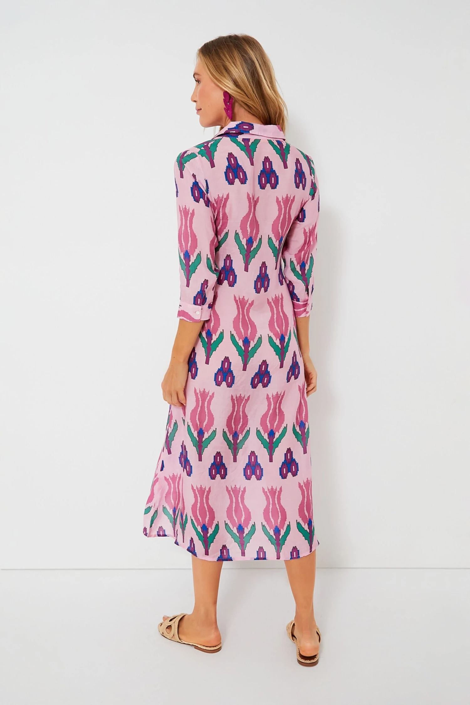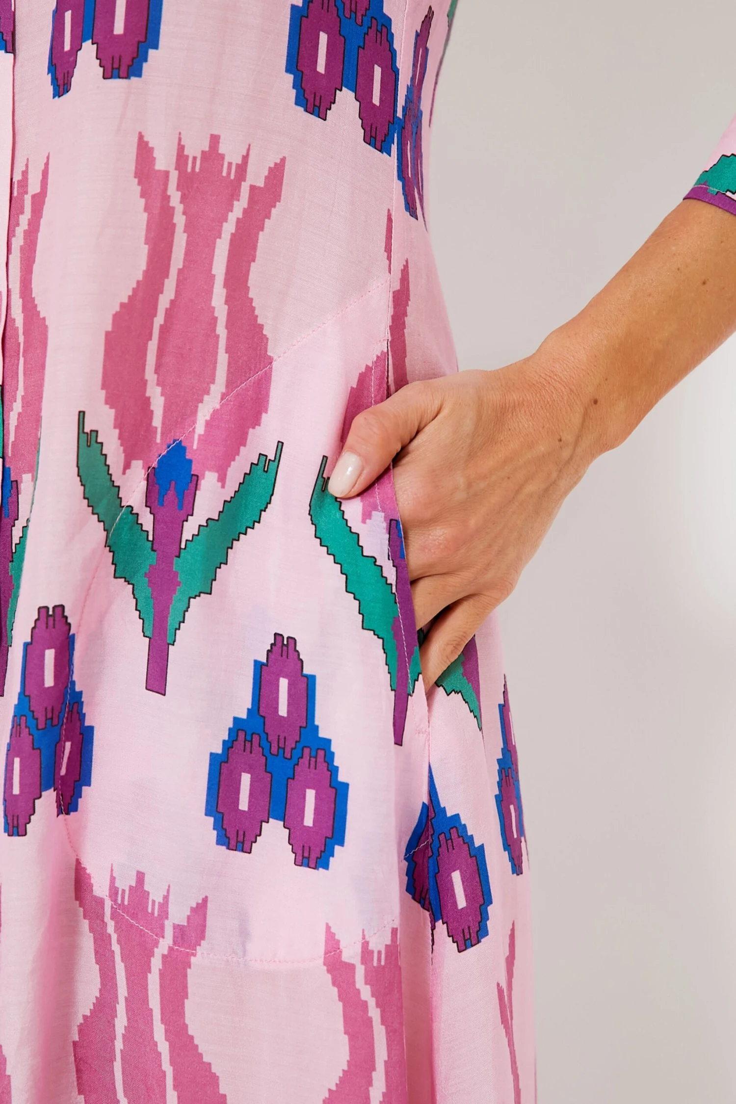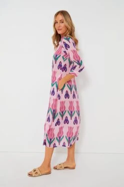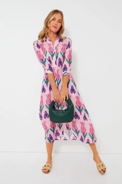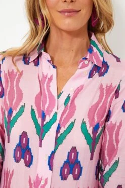 You will be a beach beauty in the Sumba Pink Shirt Dress. A classic button-down silhouette in a midi length with three-quarter length sleeves and a vibrant floral design, this style is perfect for throwing on over a swimsuit or wearing on its own with statement earrings and pumps.