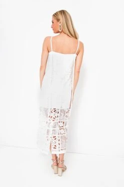 A slinky and body-skimming number that we are fully obsessed with, the White French Cut Lace Bronze Dress takes a classic column silhouette and elevates it to new heights. With an elegant square neckline and thin shoulder straps, this maxi is lined to mini length and adorned with intricate cutwork and lace details, making it a one-of-a-kind style. Perfect for warm-weather brides, or for those looking to stand out on vacation or at garden parties this season, just pair with sandals and a clutch.